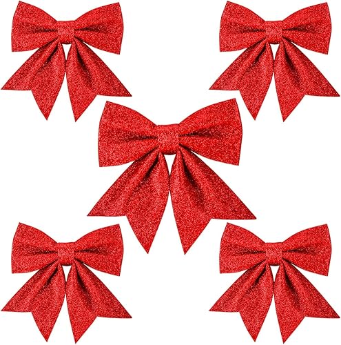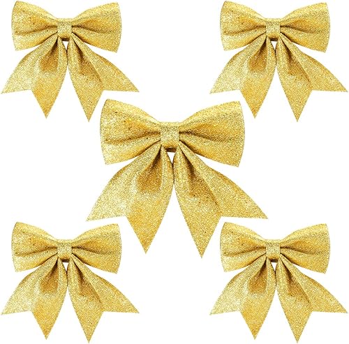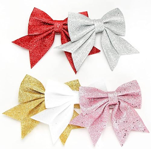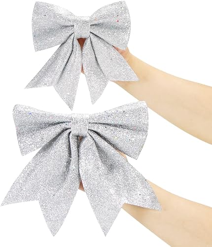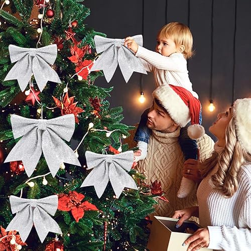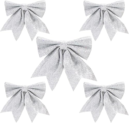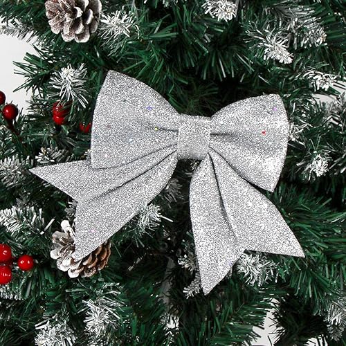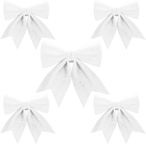 Aurasky Noeud de Ruban Blanc pour Noël - 5 Pièces Grande Décoration Scintillante pour Sapin et Cadeaux - 24 & 18cm