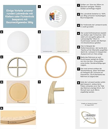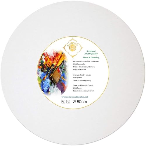 Harmonie im Ganzen Toile de châssis Ronde - 80 cm - Toile tendue avec Un Tissu en Coton 380 g/m² - Fabriqué en Allemagne