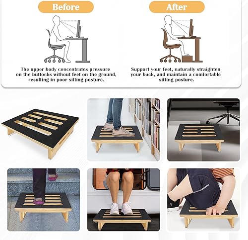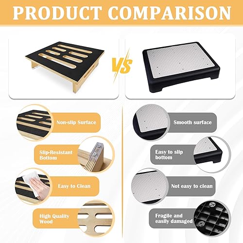 Marche Pied Bois, 40 x 32 x 10,5 cm, Marchepied avec Revêtement en Caoutchouc Antidérapant, Rehausseur en Bois Portable pour Soutien pour Enfants et Personnes Agées, pour L'intérieur et L'extérieur