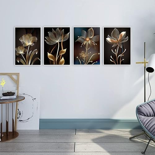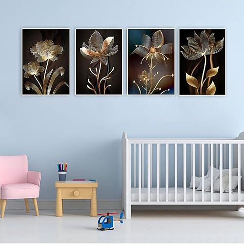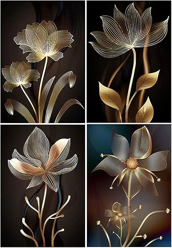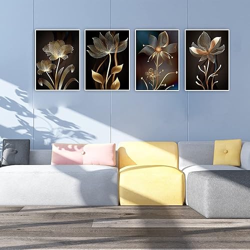 DCIDBEI Lot de 4 Broderie Diamant Fleurs Noir Or 30x40 cm Puzzle Diamant Fleur de Lotus Diamond Painting Zen Fleur de Lotus Tableau Perle Diamant Fleur de Lotus Noir Or Diamond Painting Fleur Moderne