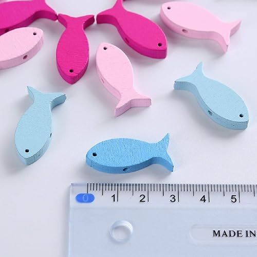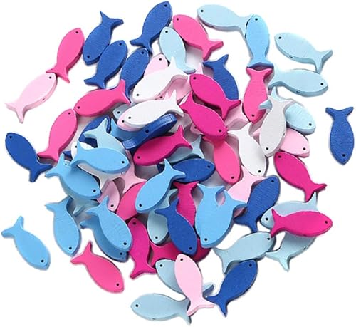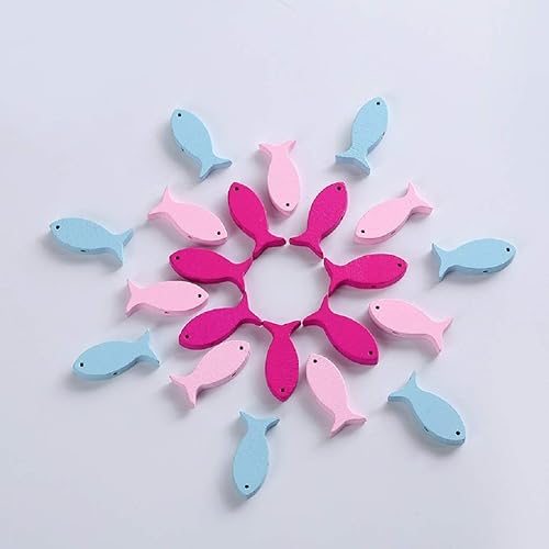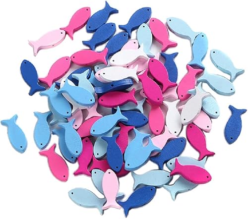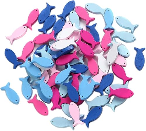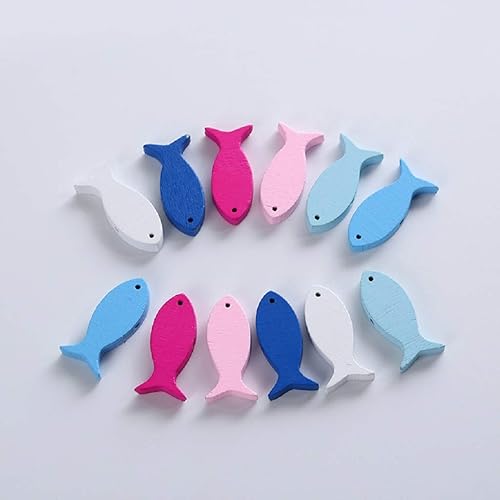 P Prettyia Lot de 50 décorations colorées en forme de poisson en bois pour loisirs créatifs, décorations colorées pour la maison