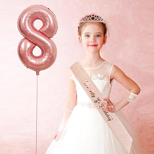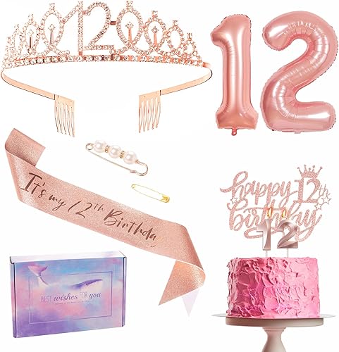 Décoration de 12e anniversaire pour fille en or rose, ruban de fête d'anniversaire, couronne, décorations de gâteau d'anniversaire, n° 12, ballons en aluminium, bougie, cadeau pour son 12ème