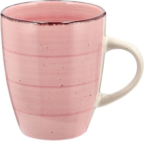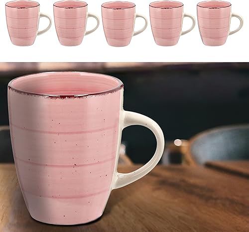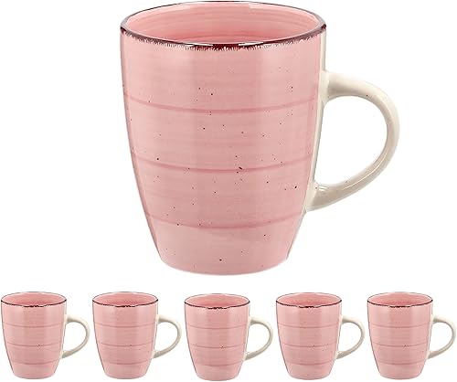 Lot de 6 tasses à café | Grès 360 ml 9 x 11 cm | Tasse à café avec anse (1 lot de 6 tasses rose)