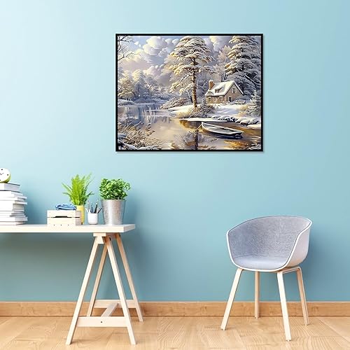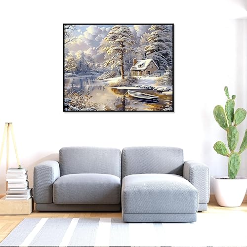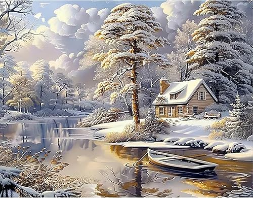 SHEGZHUC 50 x 40 cm Diamond Painting Paysage d'hiver Peinture par numéros Adulte Paysage de neige Maison Mosaïque Diamant Peinture Art Broderie Point de Croix Images Cadeau Décoration Murale
