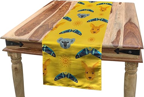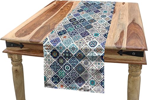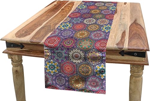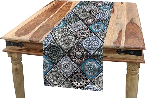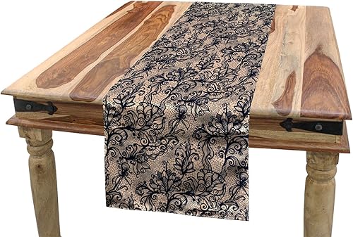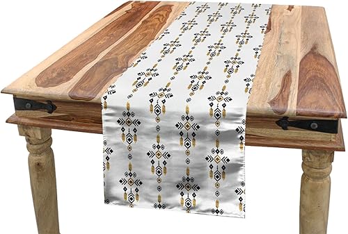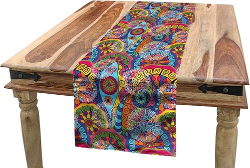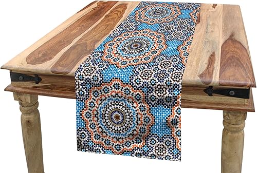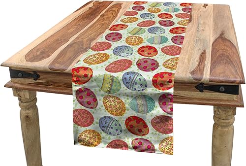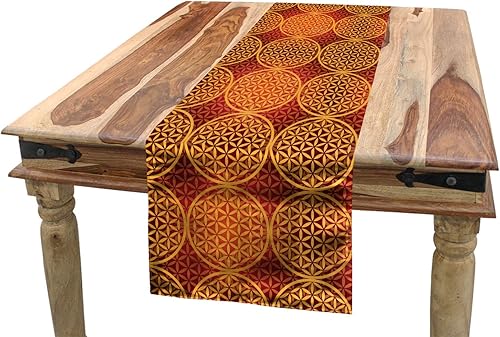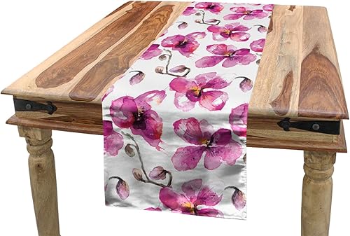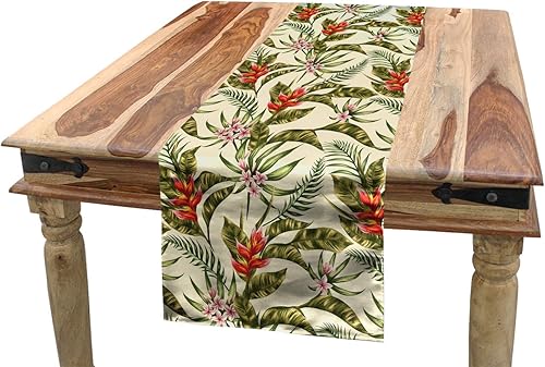 ABAKUHAUS Coquelicot Chemin de Table, Floral Blossom Spring, Rectangulaire Décoratif pour Salle à Manger, 40 x 225 cm, Olivengrün Orange Weiß