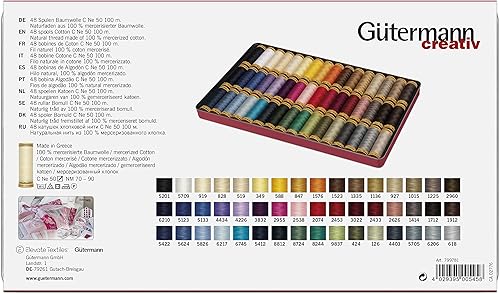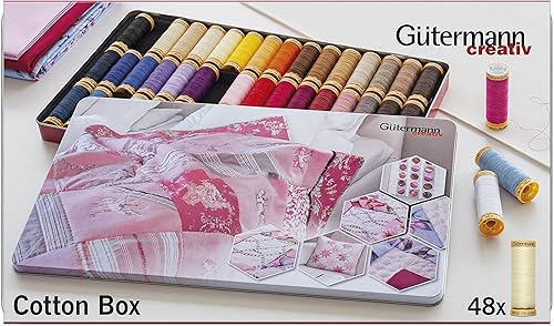 Gütermann creativ Cotton Box avec 48 bobines Coton C Ne 50 100 m, couleurs assorties 799781