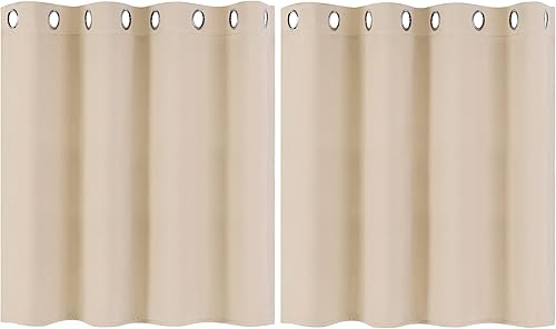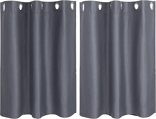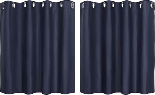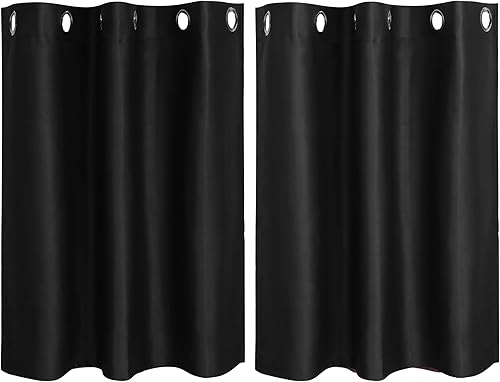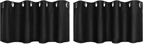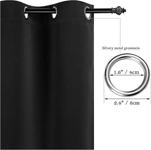PiccoCasa Rideaux occultants à isolation thermique avec œillets - Pour petite fenêtre de chambre à coucher et salon - 106 x 91 cm (largeur x longueur) - Noir - 91,4 cm de haut