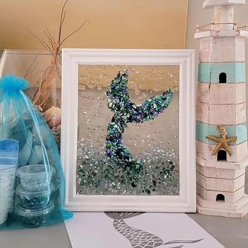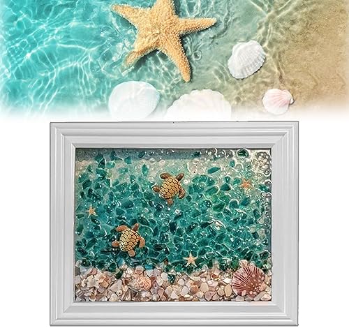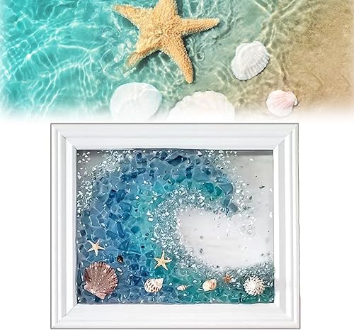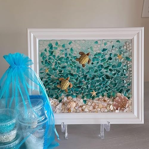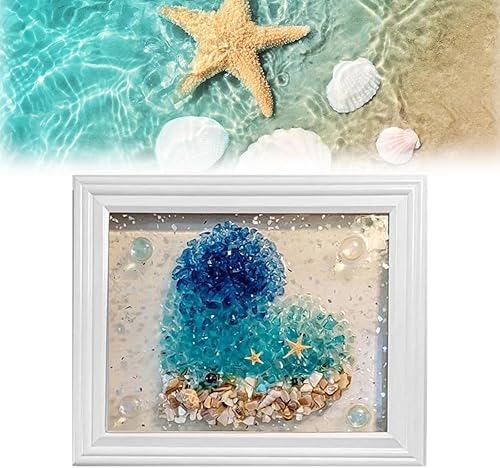 Bimhayuu Kit d'art en Verre de Mer, Kit d'art de Plage en Résine DIY, Cadre d'art en Verre de Mer Décoration de Maison Cadeaux pour Femme et Amis (B)