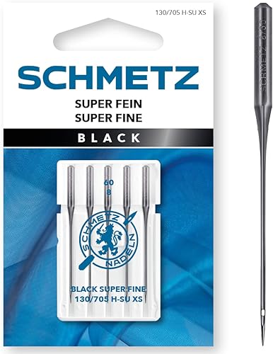 SCHMETZ | 5 Aiguilles pour machines à coudre | Black-Super-Fine | 130/705 H-SU XS | Grosseur 60/8