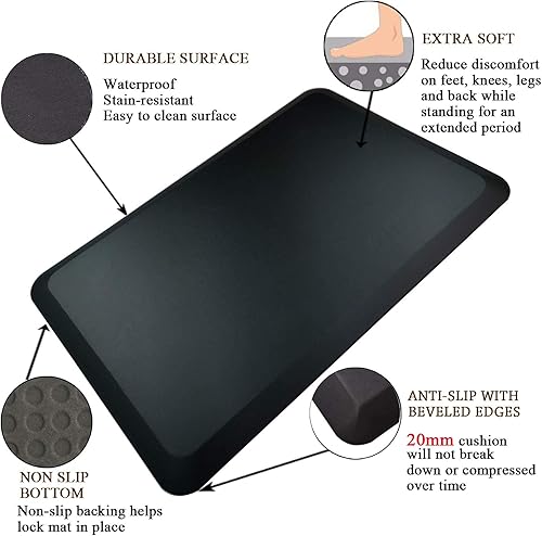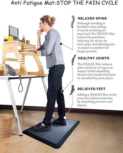HEALEG Tapis Anti-Fatigue Confortable pour Bureau et Maison - Tapis de Cuisine - Noir 2-75 x 50 x 2 cm