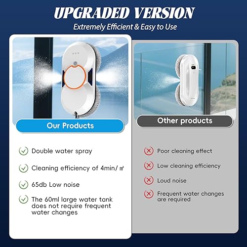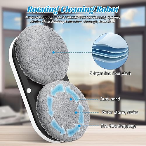Robot Nettoyeur Vitres, 5600Pa Robot Laveur de Vitre Automatique avec Tank de 60ML et 8 Chiffons de Nettoyage, Pulvérisation Automatique, Navigation Intelligente, Télécommande, 3 Modes de Nettoyage