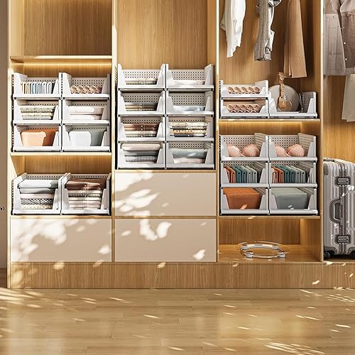 Zikenis 5 Pièces Organisateur Armoire Vetement, Empilable et Pliable Organisateur Tiroir, Plastique Rangement Tiroir Vetement, Organiseurs de Tiroir pour Chambre, Cuisine, Bureau, Salle de Bains