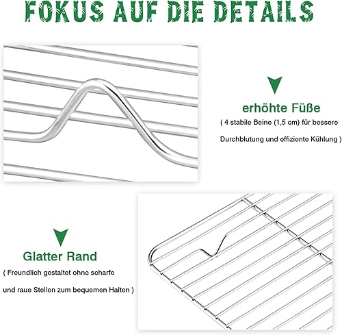 TEAMFAR Lot de 2 grilles de Refroidissement en Acier Inoxydable pour la Cuisson au Four, Le Grillage, Le Refroidissement, Le Refroidissement, 21,5 x 16 x 1,5 cm, saines et durables