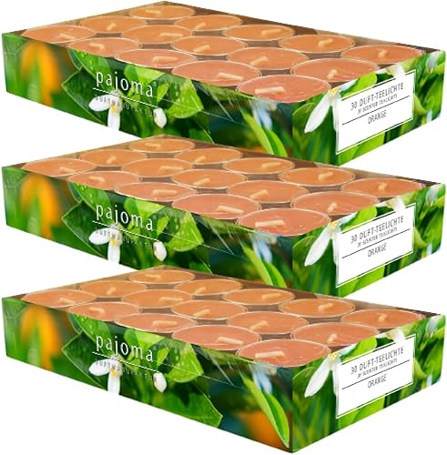 pajoma Lot de 90 bougies chauffe-plat parfumées - 3 x 30 bougies parfumées - Plusieurs parfums au choix (orange)
