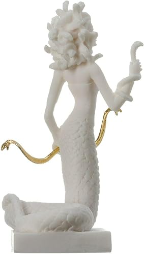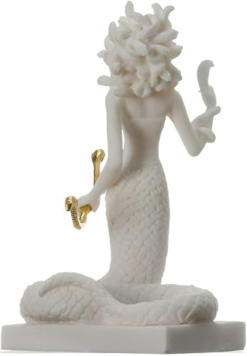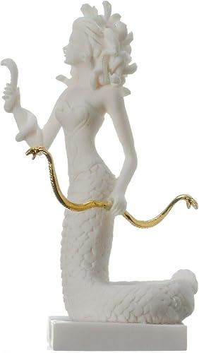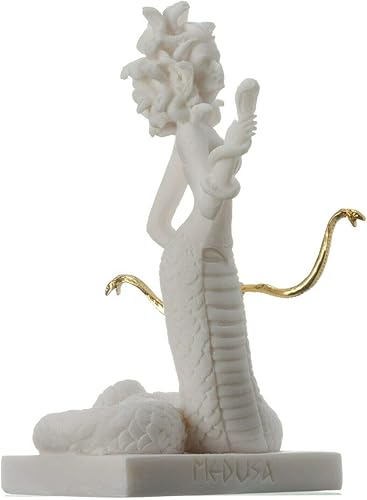 Statue de Méduse grec antique monstre tête de serpent albâtre 17 cm