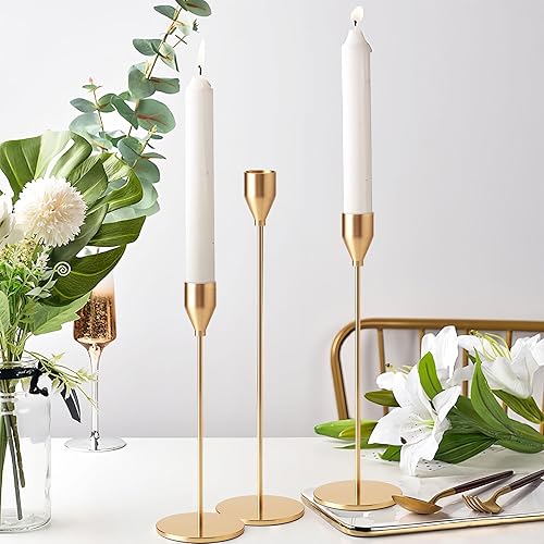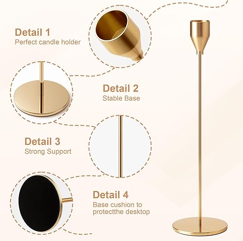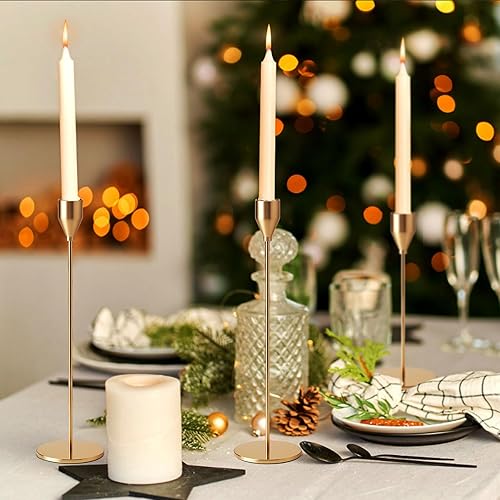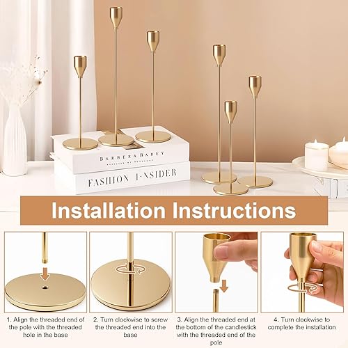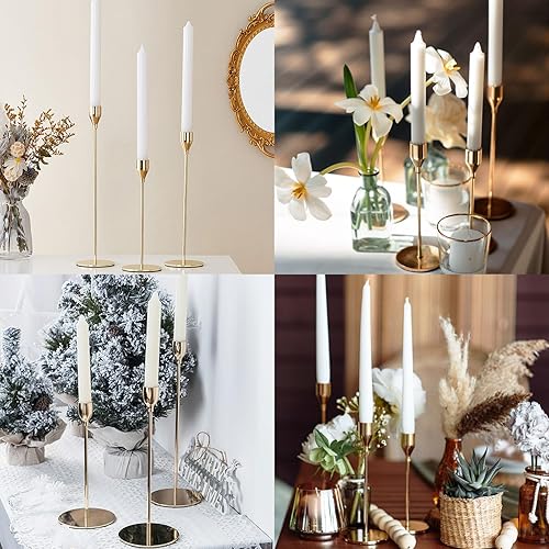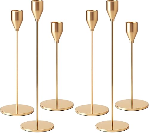 Druuzyl 6 Bougeoirs Dorés Vintage 33/29/23cm - Chandelier Conique pour Mariage & Dîners Romantiques - Lot de 6 Pièces en Métal Doré - Décoration de Table Élégante (Style Rétro)