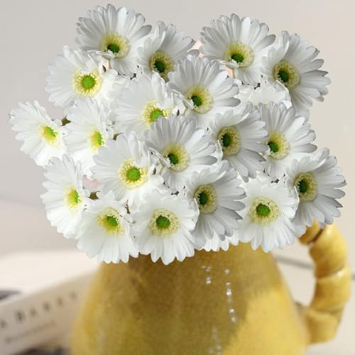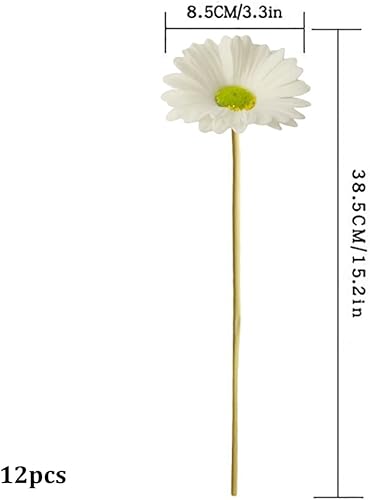 PSFDEWT Fleurs de Marguerite Artificielle Gerbera Fausse Marguerite de Soie pour décoration fête Mariage Bricolage Arrangement Floral Blanc 12pcs