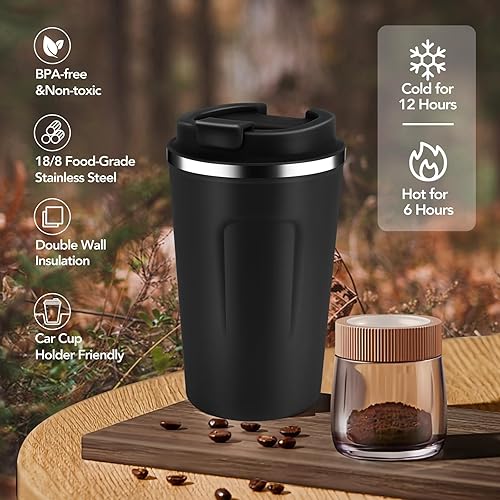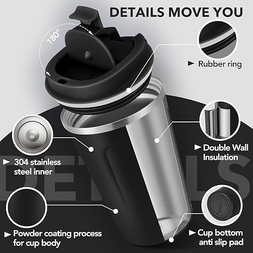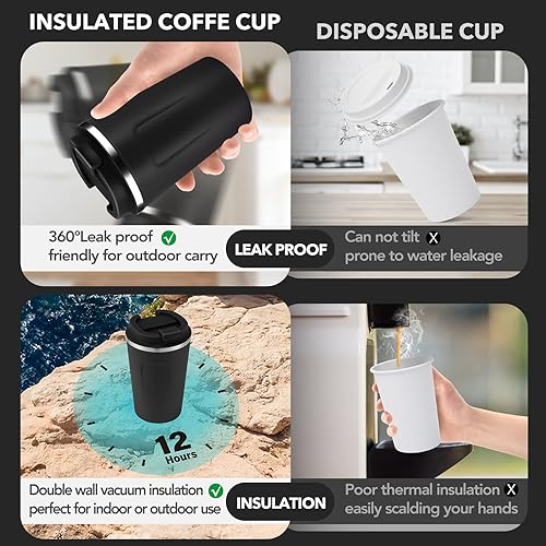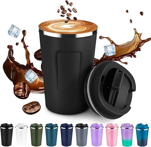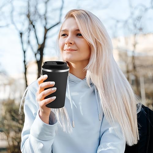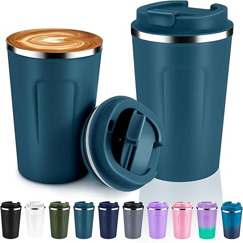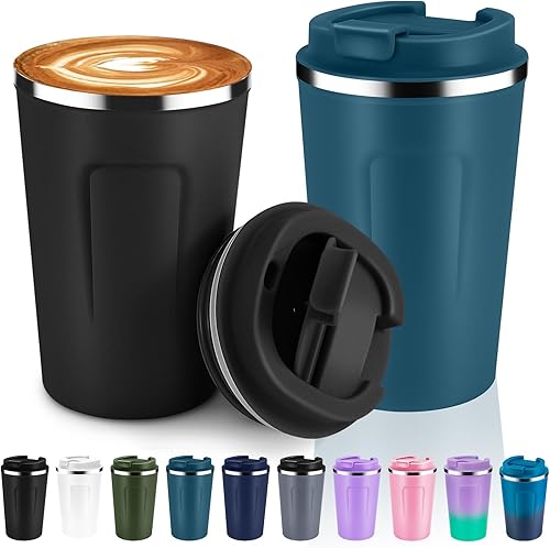 Volhoply Lot de 2 tasses à café de voyage à double paroi isotherme à double paroi avec couvercle à rabat – Tasse à café réutilisable, anti-fuite, portable pour boissons chaudes et froides (violet, lot