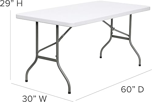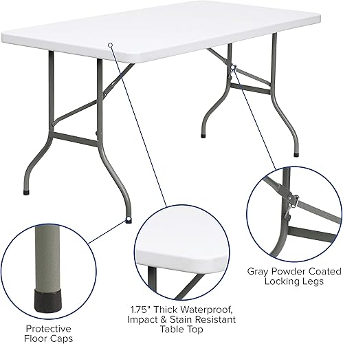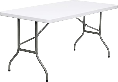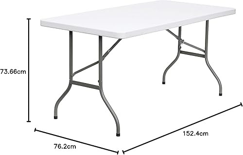 Flash Furniture Table Pliante, 1,5 m, métal, Plastique, polyéthylène, Blanc Granit