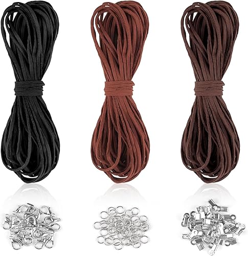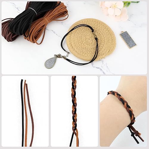 Nokwocy Cordon de Cuir, 10m x 3mm, Noir, Café Foncé, Marron, Rustique, Pour Bracelets, Colliers et Bijoux Artisanat