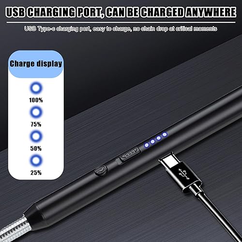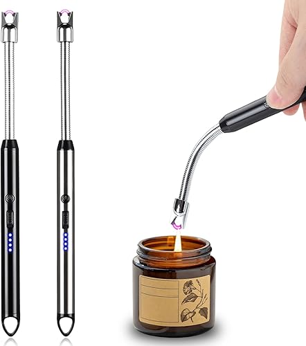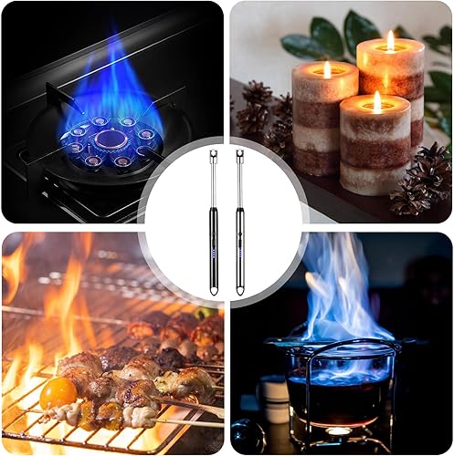 Lot de 2 briquets électriques à arc électrique rechargeable par USB - Briquet plasma - Long briquet pour bougies, barbecue, camping, cheminée (noir et argent)