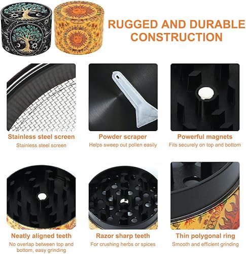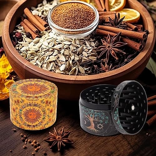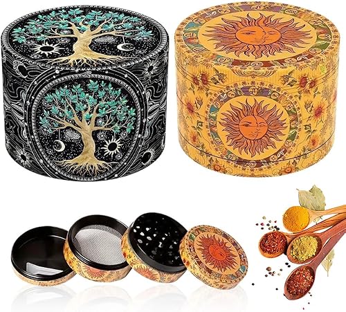 Lotvic Grinder Vintage, 2 pièces Moulin à Pollen Grinder, Herb Grinder, Zinc Durable Robuste Broyeur D'herbes Séchées avec Sa Petite Spatule à Pollen Couvercle Aimanté pour Une Fermeture (50 mm)