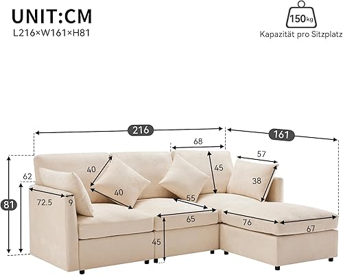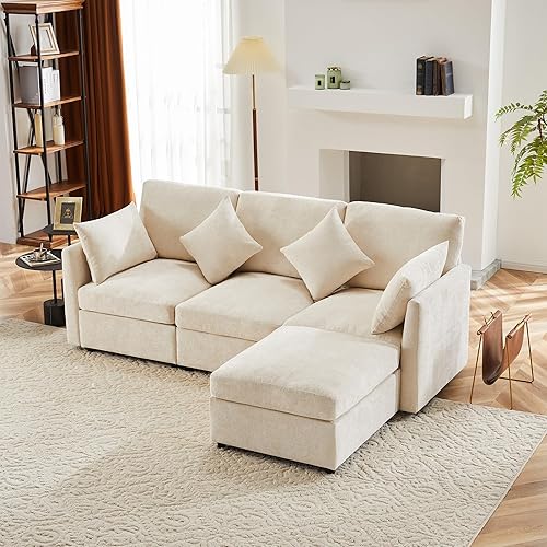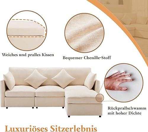Zepneiy Canapé d'angle Convertible en Forme de U, Canapé Convertible avec Repose Pieds Amovible, Canapé 3 Places Canapé Moderne Design pour Appartements, Canapé lit en Chenille Gris