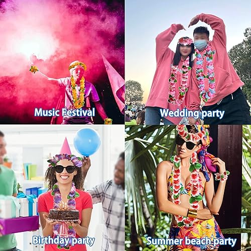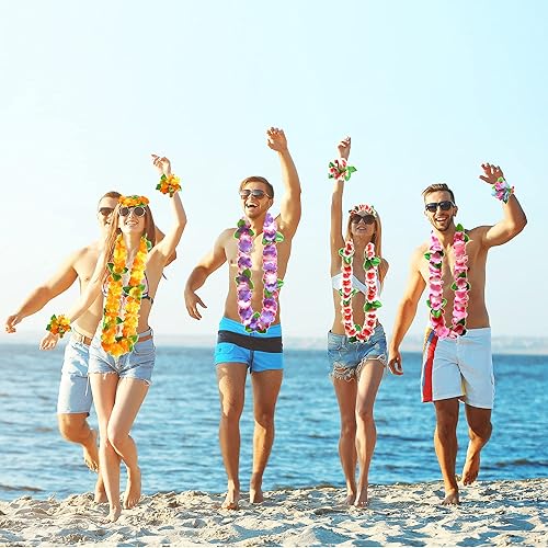 duoyif Guirlandes Hawaïennes Fête Hula Luau Bracelet Collier Bandeau Hawaïen Guirlandes De Fleurs Couronne De Plage Décorations De Fête pour Pom-Pom Girls Soirées à Thème Anniversaires (B)