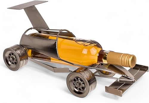 MIJOMA Porte-bouteille de vin voiture de course en métal - Décoration élégante pour cuisine et salon - Argenté - 30 x 13 x 13 cm - Idéal pour les amateurs de vin, MIJ-84980