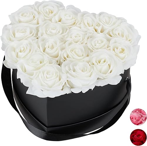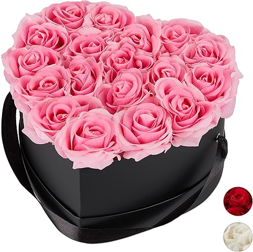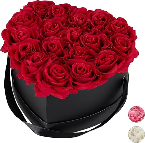 Relaxdays, rouge Boîte, 18, Bac à roses noir, forme en cœur, conservable 10 ans, carton, tissu, PP, 13 x 21 x 19 cm
