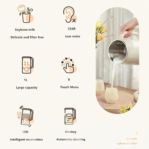 HmLotd Machine à Lait de soja Intelligente, Mini Grain cassant, 1 l, Grande capacité, Temps de réservation de 12 Heures, Son Lumineux et Faible Bruit, Nettoyage Automatique à Un Bouton, adapté