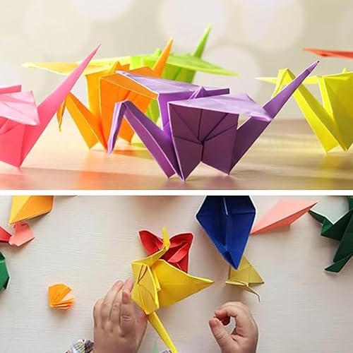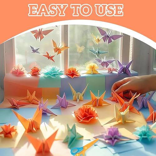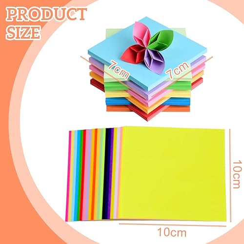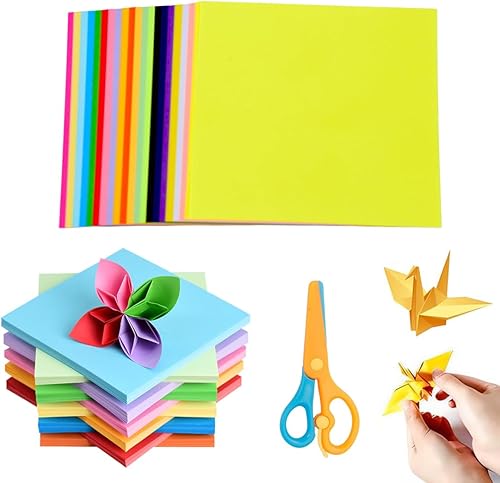 VONJUMA 200 Feuilles Papier Origami Papier Origami Double Face Petits Carrés De Papier Origami Pour Les Enfants L'École Les Projets D'Art Et De Bricolage Adultes 7×7Cm Et 10×10Cm Avec 1 Ciseaux