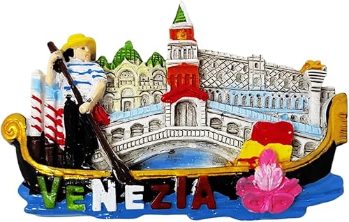 Aimant de réfrigérateur Italie Venise avec gondole et fond ville 3D de résine de collection 9 x 6 cm 60443