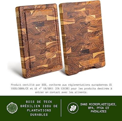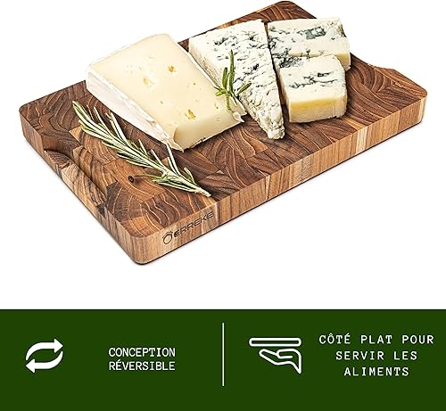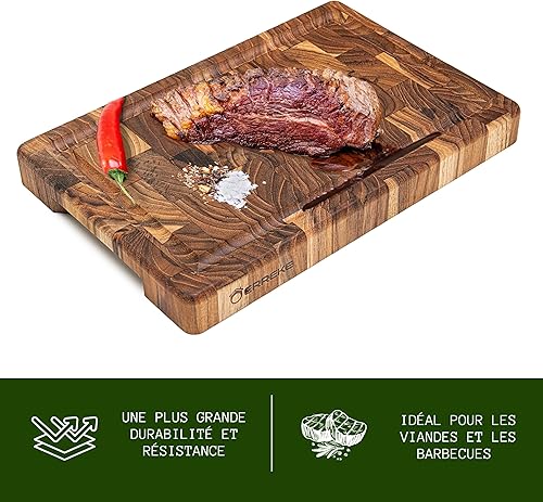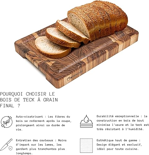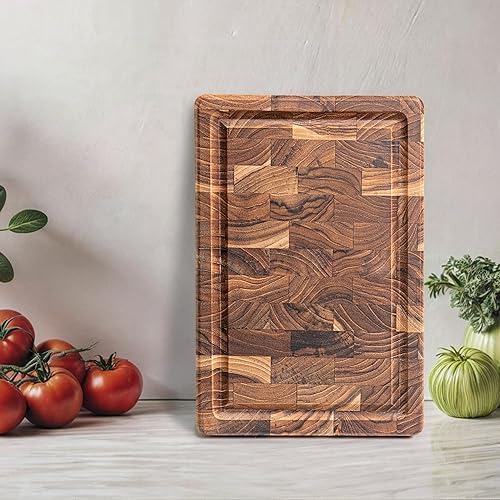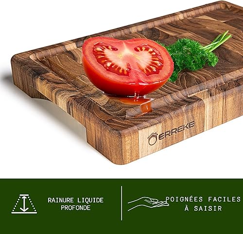 Erreke Planche a Decouper Bois, Bois de Teck End Grain, Planche à Découper Robuste et Compact Idéale pour Petit Cuisines, Couper Servir Viande Fromage Pain, 30x20x3.2 cm