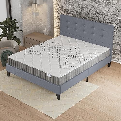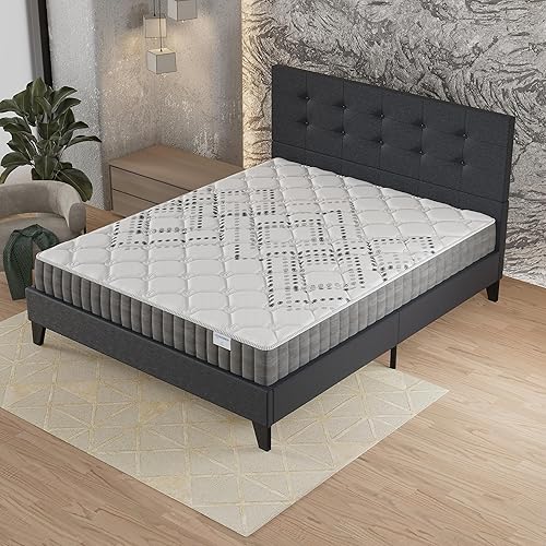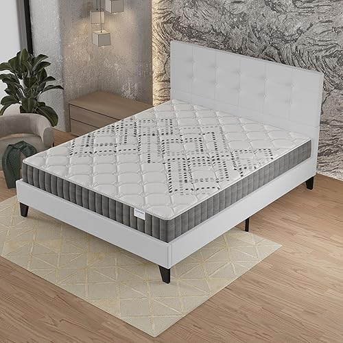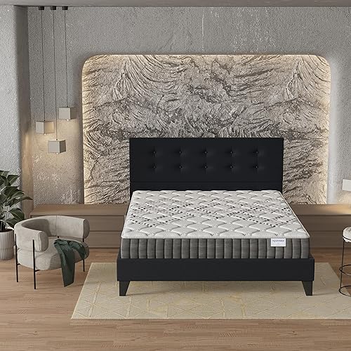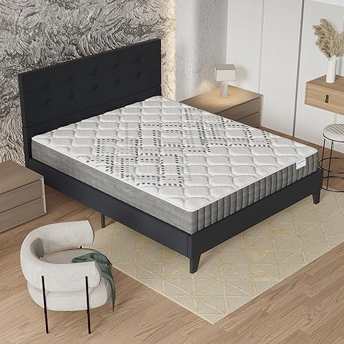 sensoreve Ensemble Matelas + LIT (120x190cm)- Matelas Eliha 20cm Ressorts ensachés & Mousse HDensité + Sommier tête de lit Bois Stable & Robuste revêtement synthétique Noir