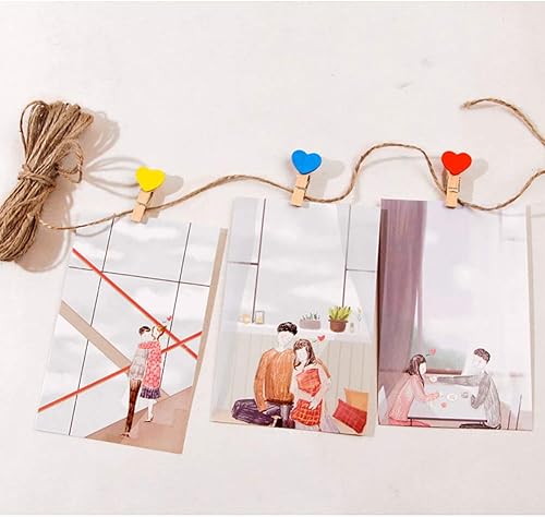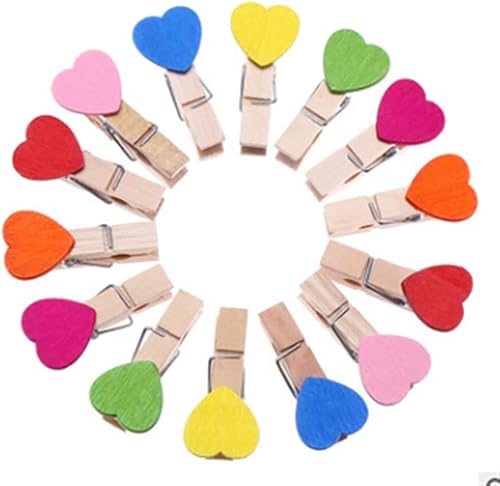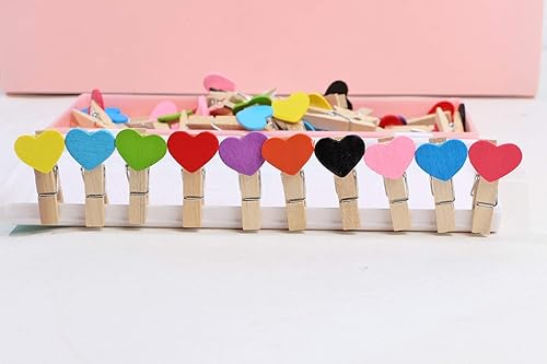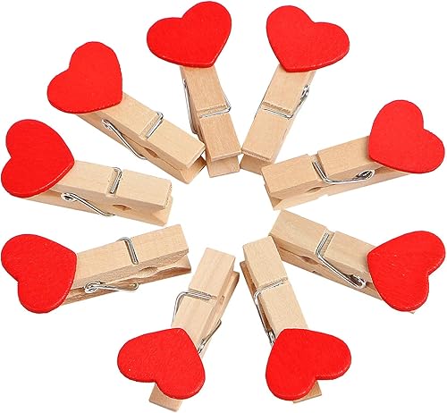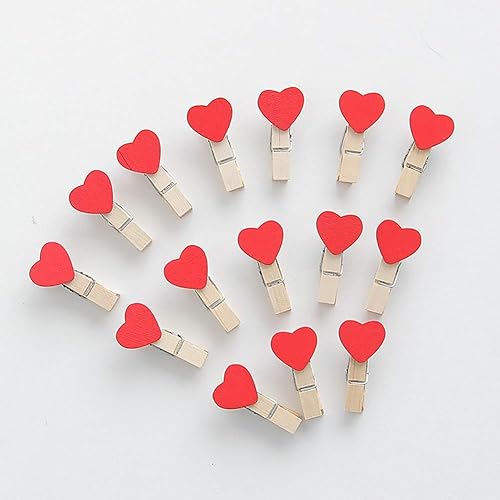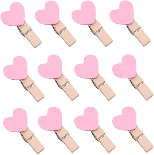 JIHUOO 50 Pièces Coeur Mini Pinces à Linge en Bois Epingle à Linge Clips Photos Pince à Papier Bricolage pour Décoration de Carte de Titulaire de Photo Rose