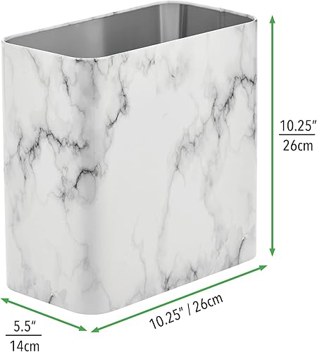 mDesign Corbeille à papier en métal – Poubelle de salle de bain rectangulaire compacte – Corbeille à ordures pour la maison et le bureau – Couleur marbre