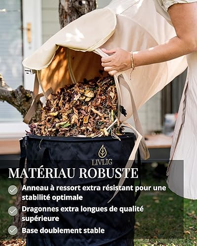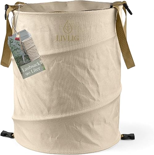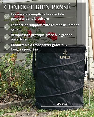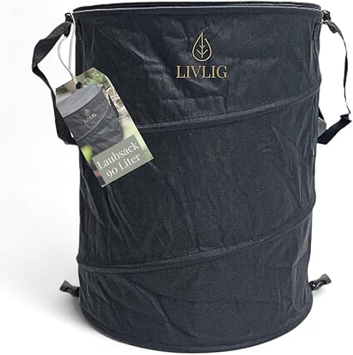 LIVLIG Sac de jardin Pop Up 90L, Sac à feuilles avec couvercle, Sac à déchets de jardin stable, Bac à feuilles pliable, Anthracite