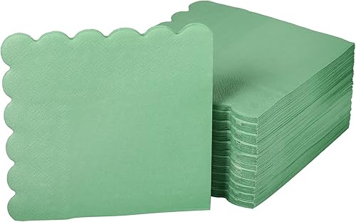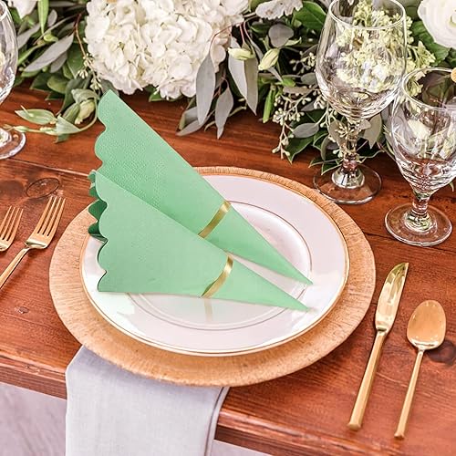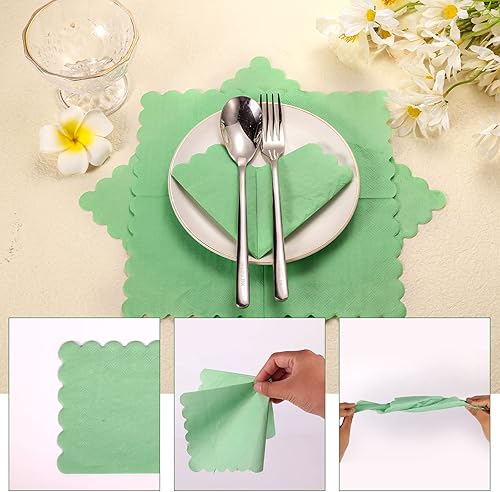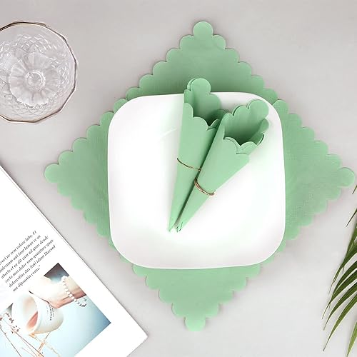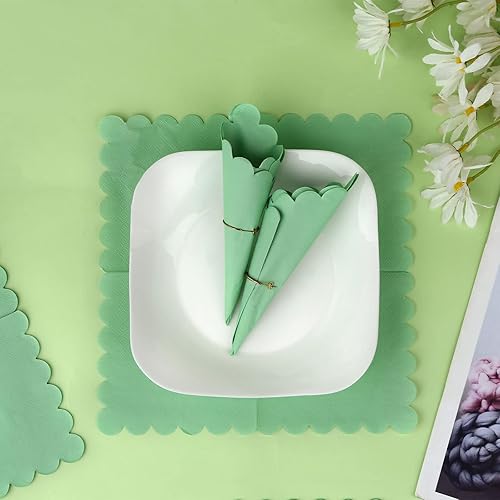 100pcs Serviettes Cocktail Vert Sauge, 12 x 12 cm Exquises Serviettes à Cocktail Sauge Festonnée Serviettes Cocktail Trois Épaisseurs pour Fête de Mariage Dîner Anniversaire Fournitures