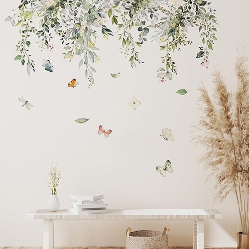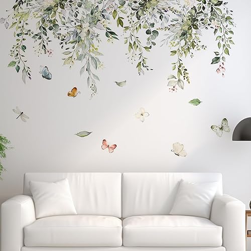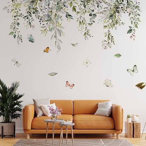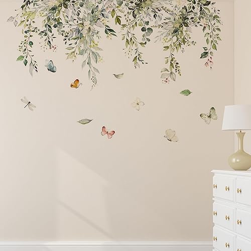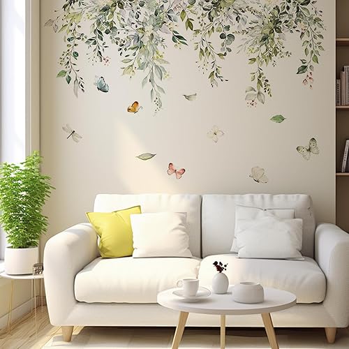 Sticker mural avec feuilles vertes suspendues, plantes et vignes, décoration murale et de fenêtre pour la maison, le bureau, la chambre à coucher