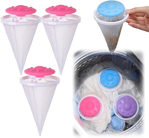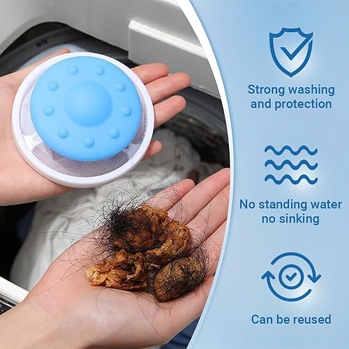 Lot de 3 filtres flottants en maille filtrante pour machine à laver, pièges à peluches et épilation des poils de chien/chat pour tuyau à linge, sac filtre en maille anti-obstruction avec ajustement