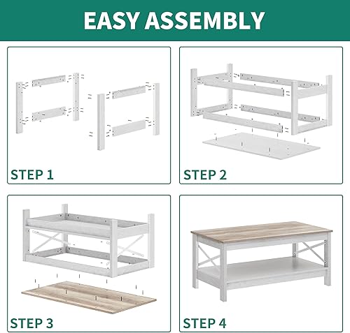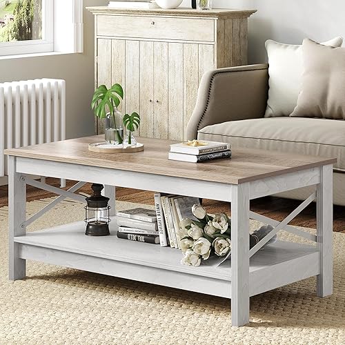 YITAHOME Table Basse Rectangulaire, Table Basse Salon Bois, Double Epaisseur de Bois, Support Latéral en Métal Forme de X, 100x55,3x45cm