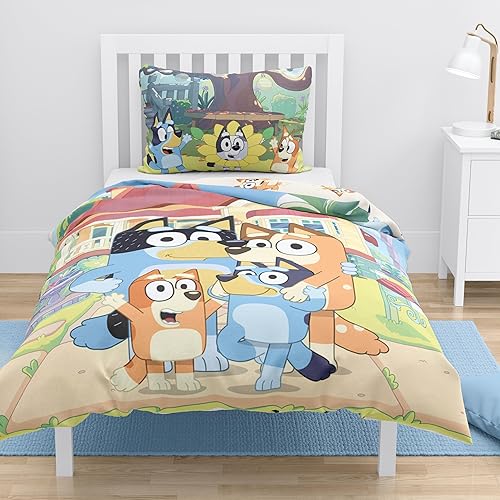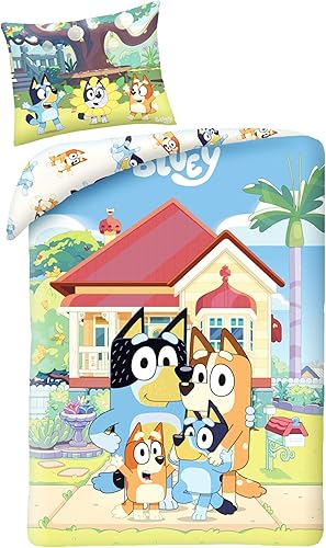 MTOnlinehandel Bluey Parure de lit 100 x 135 cm, 40 x 60 cm, 100 % coton, parure de lit pour bébé fille et garçon, multicolore, petite parure de lit pour enfant avec fermeture éclair