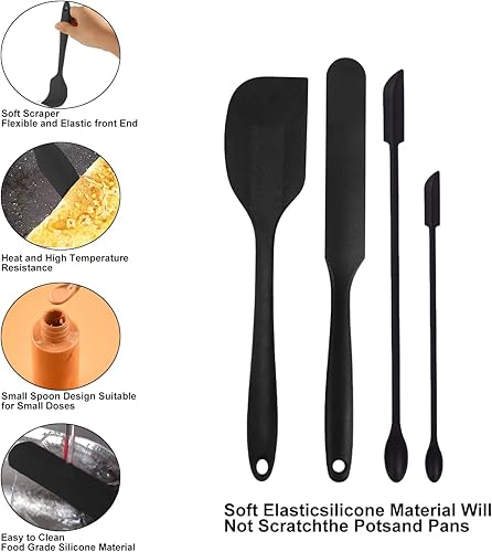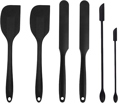 CORTNEY 6 Pièces Spatules en Silicone de Qualité Alimentaire Ustensiles de Cuisine, Résistant à la Chaleur, Outils de Cuisson Antiadhésifs, pour Pâtisserie et Cuisine (Noir)