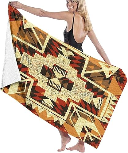 Serviette De Plage Microfibre,Style Amérindien Abstrait Grande Serviette De Plage Légère De Drap De Bain Parfaite pour Les Sports De Remise en Forme De Natation De Voyage D'Hôtel De Famille