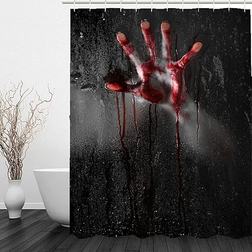 3D Rideau de Douche Mains Sanglantes D'Horreur Rideaux de Douche Mains Sanglantes D'Horreur Imperméable Anti Moisissure Rideau Salle de Bain pour Baignoire Rideau Douche 120 x 180 cm, 8 Crochets