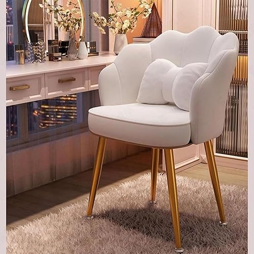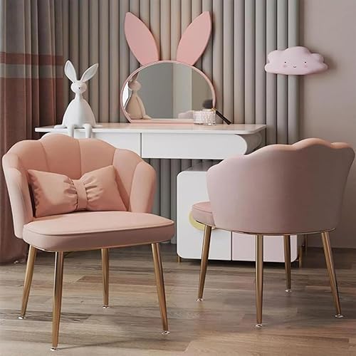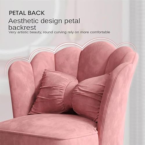 Chaise de maquillage tendance en velours – Chaise basse en forme de coquillage pour salon, chambre à coucher et bureau – Pieds en métal rembourrés élégants (rose)
