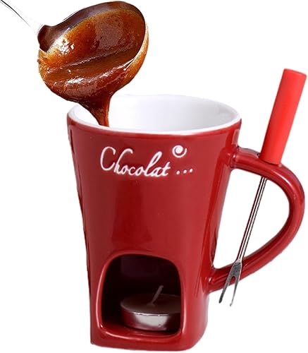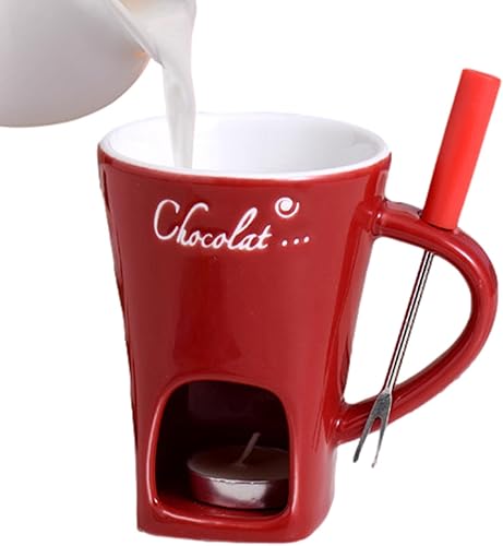 yupeuooe Chauffe-Beurre en céramique, Ensemble Chauffe-Beurre | Tasse à Fondue au Chocolat personnelle de 130 ML - Chauffe-Beurre Polyvalent avec Fourchette à Fondue, Tasse de Fondue créative pour