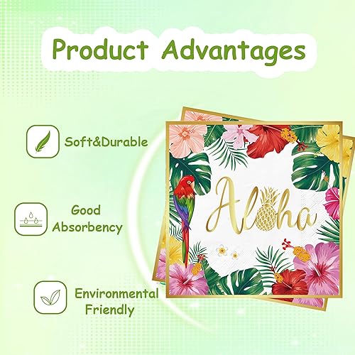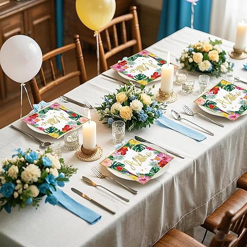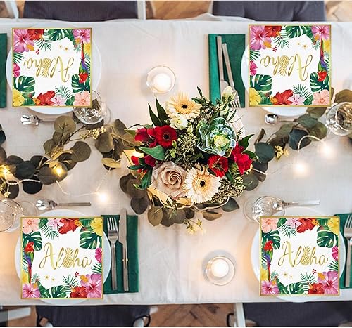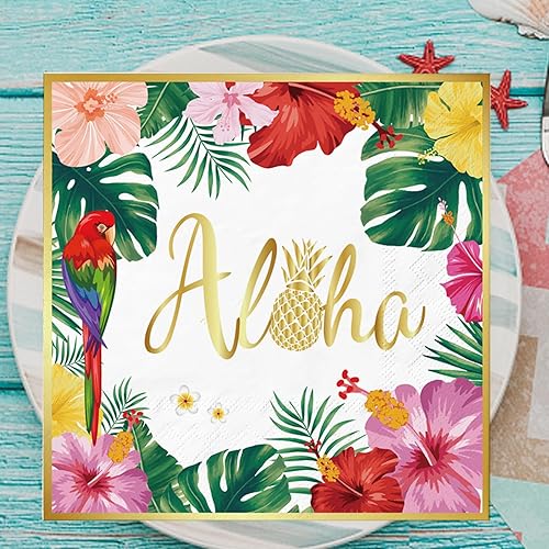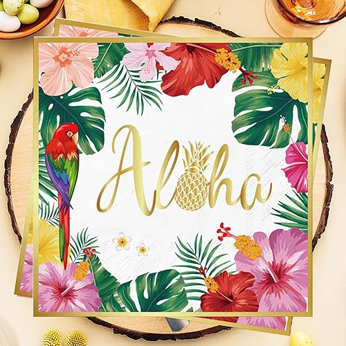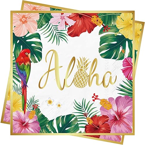 Lot de 40 serviettes hawaïennes tropicales d'été hawaïennes - Décorations de table d'été - Serviettes en papier jetables - 33 x 33 cm