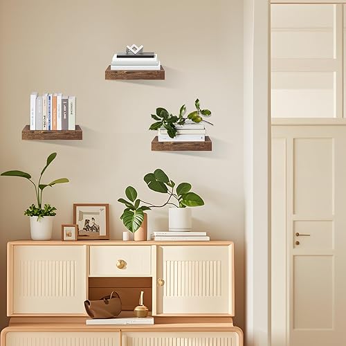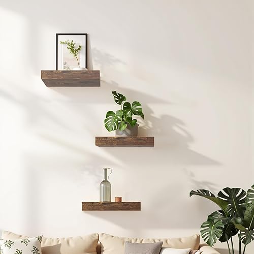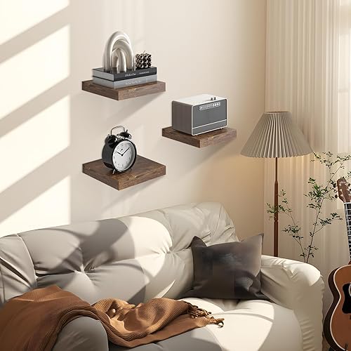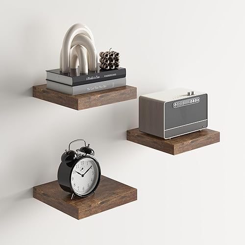 FURNITABLE Étagère Murale 20x20cm Salle de Bain Lot de 3 Solution Rangement Compacte Espace Réduit Cuisine, Marron Vintage